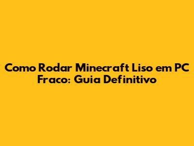 Como Rodar Minecraft Liso Em PC Fraco: Guia Definitivo