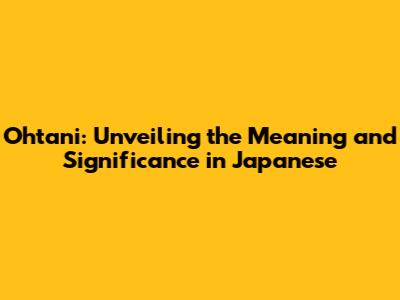 Ohtani: Meaning And Significance In Japanese