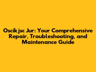 Oscikjsc Jur: Repair, Troubleshooting, And Maintenance