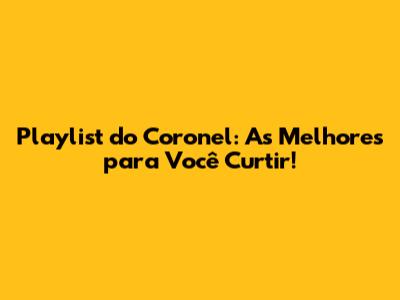 Playlist Do Coronel: As Melhores Para Você Curtir!